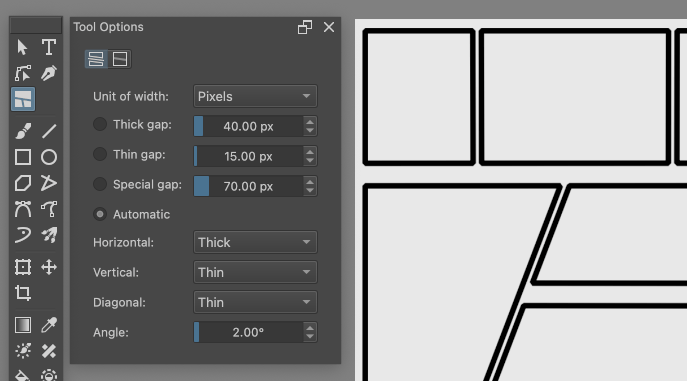 There's a new tool in the Toolbox: the Comic Panel Editing Tool. Agata designed this for creating comic panel gutters by cutting gaps in vector shapes. (MR!2331)